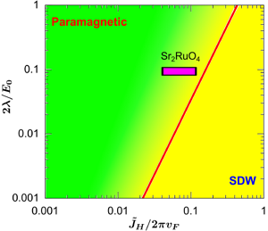 非常规超导体Sr2RuO4是一种可能的拓扑超导体。有实验证据表明,其超导电子配对具有特殊的手征p-波对称性。但其超导配对电子的来源尚有争议。在Sr2RuO4中,费米面附近的电子主要来自与三个能带,其中两个能带(α和β)具有准一维的结构,另一个能带(γ)是二维的。早期的理论认为p-波电子配对来自于二维的γ能带,但最近有理论认为一维的α和β能带更加重要。因为一维能带的嵌套结构会导致实验中观测到的强烈的自旋密度波(SDW)涨落。
