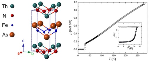 近期曹光旱教授课题组与山东理工大学王操副教授(系pp电子游戏平台官网物理系2010届博士毕业,曾获2013年全国百篇优秀博士学位论文提名)合作,发现了首个以氮化物作为间隔层的1111型新超导体ThFeAsN。该超导体的鲜明特点是:它无需通过化学掺杂即呈现出Tc为30K的超导电性。相关论文发表在《美国化学学会会刊》(J. Am. Chem. Soc. 2016, 138, 2170-2173)上。