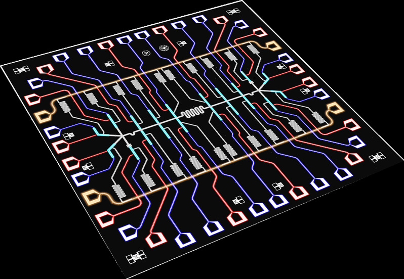 借助于显微镜,这1平方厘米的“大脑”――超导量子比特芯片露出真容。20个量子比特,均匀分布于中心谐振腔的周边,犹如由中心枢纽贯通的各个支路。“这是我们实验室迭代的第四代电路设计方案,目标是让任意两个量子比特之间都能进行直接‘沟通’,实现全局纠缠。”芯片的设计者之一,本科生张叙说。这样的芯片则是由中科院物理所李贺康博士制备的,他在近期作为博士后加盟浙大,有望在浙大微纳加工中心做出更复杂的芯片。
