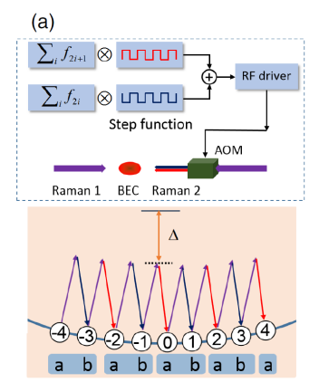 基于先前的动量晶格技术,通过设计交错的周期性驱动的Raman光,研究团队实验上实现了动量空间的超冷原子的离散量子行走,并且观测到参数改变导致的拓扑相变过程。