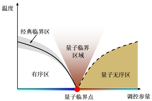 那么,在绝对零度时是否还会发生相变?根据经典相变的观点,在绝对零度时热涨落已经被完全抑制,相变应该不再发生。然而,根据海森堡不确定性原理,微观粒子的动量和坐标不可能同时确定。因此,即使在绝对零度,粒子仍然具有“零点能”,存在量子涨落。类似经典相变中的热涨落,量子涨落同样可诱导量子相变。