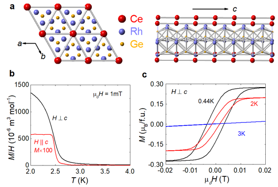 图2:CeRh6Ge4的晶体结构及铁磁性质