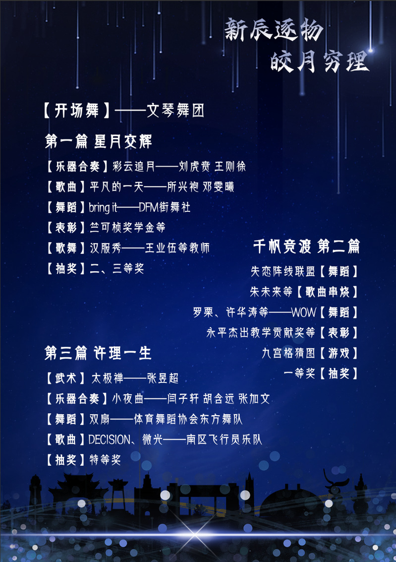 物理学系兹定于2020年12月12日19:00于玉泉校区永谦剧场举行2021迎新晚会,诚邀全体教师、学生、校友和亲属参加。入场券门票欢迎移步至教十二404领取,晚会现场有抽奖环节需要将入场券副联投入抽奖箱。