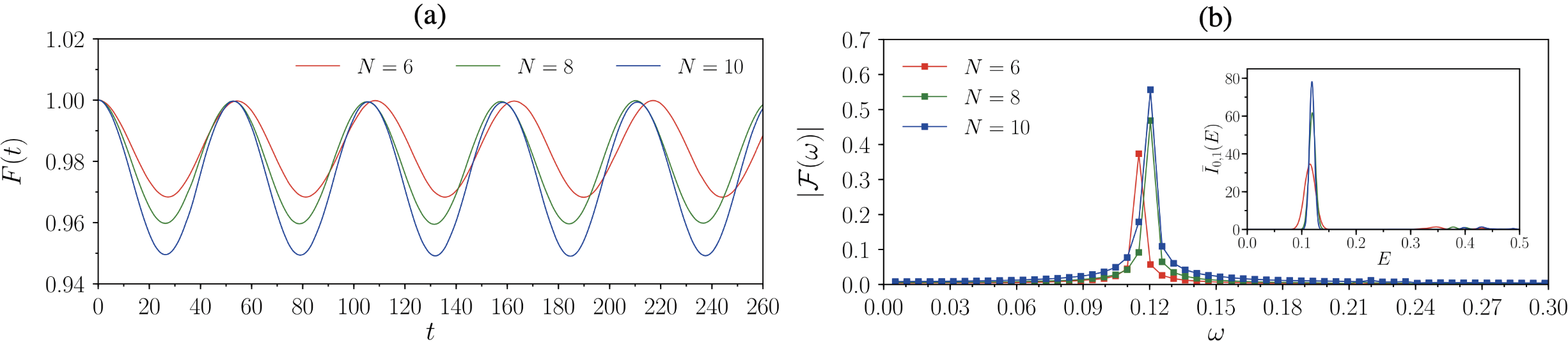 (a)在一层突然施加电场后,系统从Halperin态出发随时间的演化保真度出现规则震荡;(b)保真度的傅立叶变换在特定频率存在单一峰,该频率与dipole模的长波极限能量吻合。