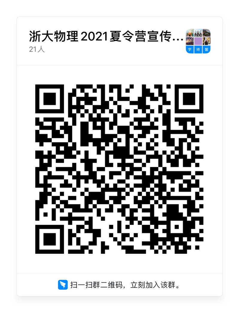 钉钉扫描二维码,备注“姓名+学校+学号+手机号”申请入群(入群后请实名,选拔夏令营正式营员时将会核对个人信息):