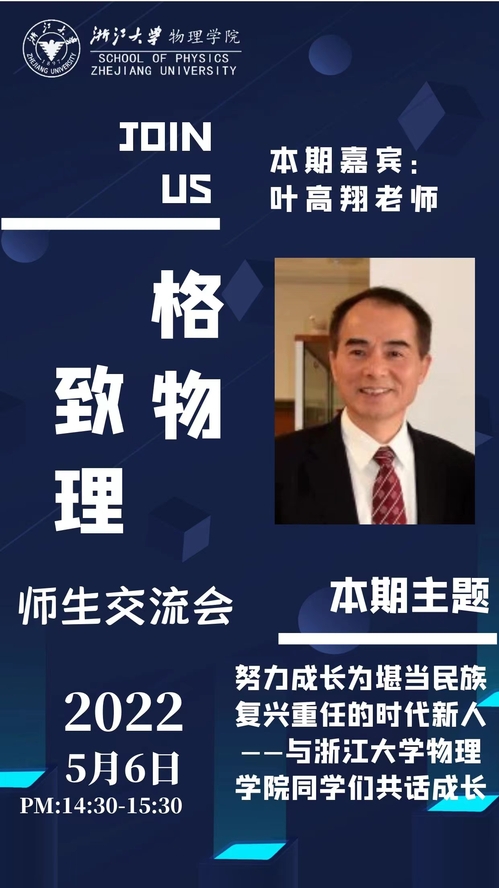 为进一步促进我院师生交流,凝聚师生奋进力量,现定于2022年5月6日(周五)召开pp电子游戏平台官网第四期“格物致理”师生沙龙,特邀叶高翔教授作报告,并与同学们座谈。具体事项通知如下:
