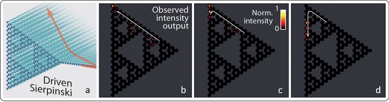 图2:a,具有周期性调制的谢尔宾斯基光子晶格。b-c,具有拓扑保护的边缘态。