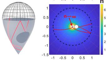 最近,pp电子游戏平台官网光电物理研究所王立刚课题组和以色列Sebbah教授组基于变换光学的思想,提出了一种通过引入适当的折射率分布,来消除光学腔或调控光学混沌系统中的混沌,并实现光线整形的方法。并进一步提出如果将混沌桌球系统与非欧几何的桌球系统相联系,还可以利用曲面上测地线的一些特殊性质来实现光束整形,如利用史瓦西度规,可以将黑洞附近的光子层概念迁移到光学腔中。实现混沌开关和光线整形在光子学和激光物理中有很广泛的应用潜力。该成果于近期发表在杂志Laser & Photonics Reviews [ Chenni Xu*, Li-Gang Wang*, and Patrick Sebbah*, Laser & Photonics Reviews, 202200724 (2023)]。pp电子游戏平台官网博士生徐晨妮、王立刚教授和以色列巴伊兰大学Sebbah教授为共同通迅作者。
