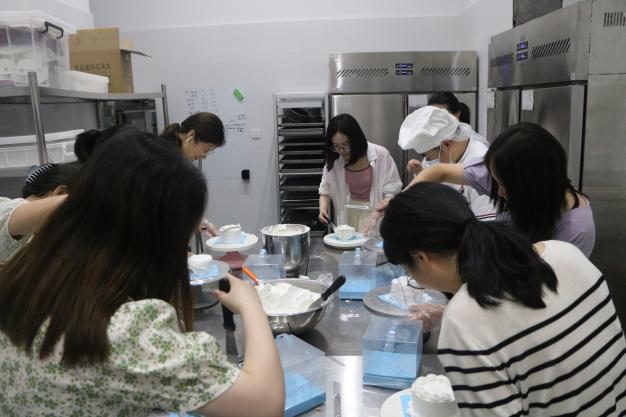 除了制作蛋糕,活动也成为了一个交流和互动的平台。老师们互相倾听彼此的烘焙心得和故事,分享彼此的成功和困惑。大家一起学习、一起创造,形成了一种特殊的凝聚力和友情。参与本次活动的老师们不仅学到了烘焙的技巧和知识,更重要的是建立了新的友谊和团队合作的意识。
