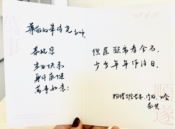 党委书记颜鹂转达了院长林海青院士的问候,代表学院为第四季度过生日的老师们送上生日祝福。她向大家介绍了今年以来pp电子游戏平台官网各项事业取得的成果,同时感谢大家平日的辛勤工作以及为学院作出的突出贡献,祝愿大家身体健康,工作顺利、生活美满,希望大家在各自的岗位上继续再接再厉,为学院的发展和建设添砖加瓦。送完祝福后,颜鹂还为大家送上了工会准备的小礼物和邹安川为每一位老师手书的生日贺卡,把整个活动的氛围推向了高潮。