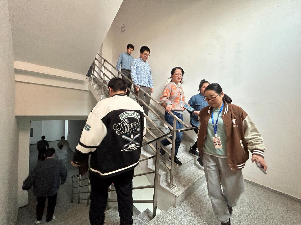 疏散完成后,王凯副院长对本次演练做了总结,强调了消防安全的重要性,特别是在火灾逃生时应尽可能快速反应,在尽可能短的时间内逃离火灾现场。夏平副主任对本次演练做了点评,提出了一些逃生的技巧和方法,比如在逃生过程中应尽量避免使用有烟的通道进行逃生,快速寻找无烟安全通道,避免进入浓烟区域导致逃生困难,并对本次演练的效果做了肯定。