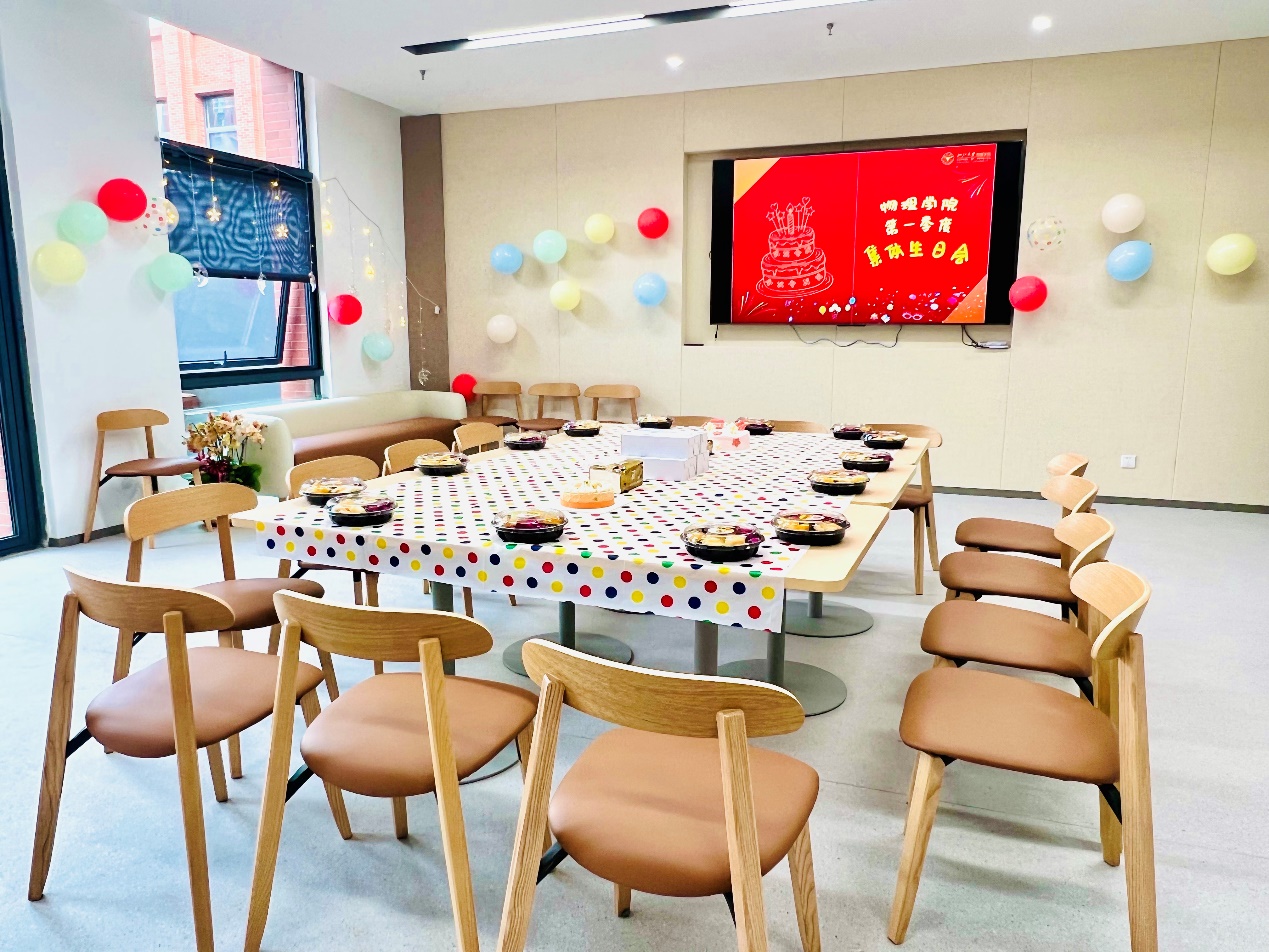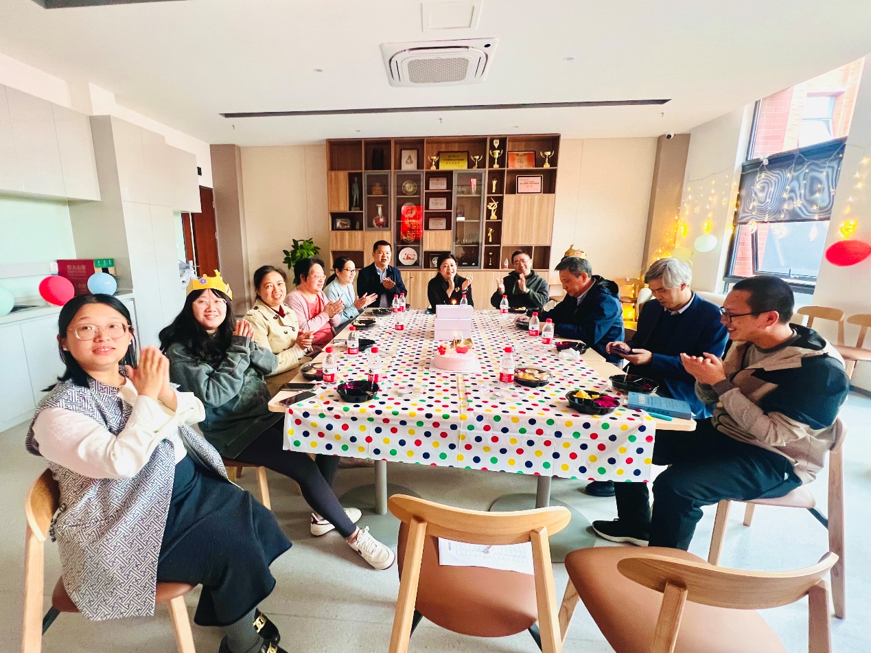 3月27日下午,在海纳苑8幢三楼教工之家,音乐和笑声频频传出,一场温馨融洽的集体生日会在此进行……