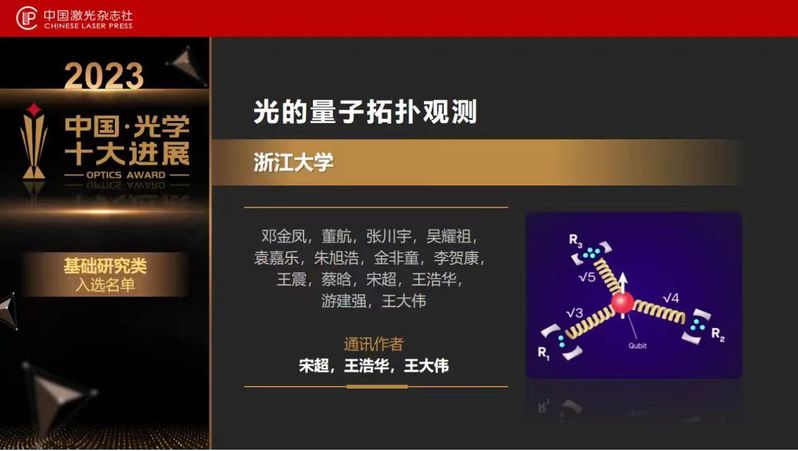 “中国光学十大进展”评选活动由中国激光杂志社发起,由多名一流光学专家组成的评委会完成,旨在表彰光学领域的中国学者发表在国内外主流学术期刊上的重要研究成果,每年评选基础研究类和应用研究类成果各10项。