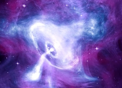左图:蟹状星云;右图:中子星辐射示意图