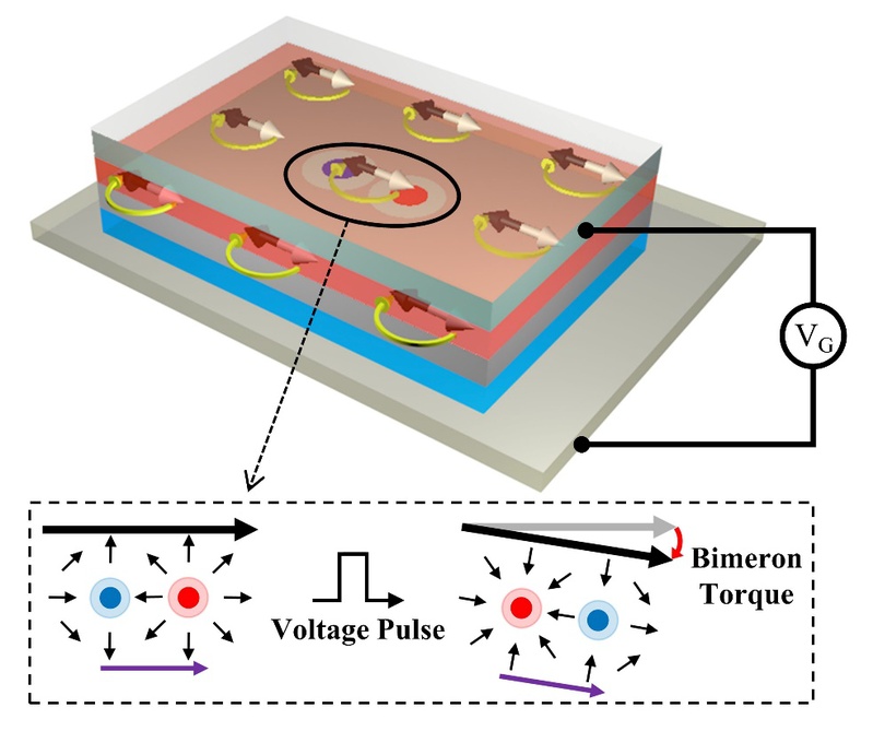图1. Bimeron力矩磁随机存储器(bimeron-torques MRAM)示意图。