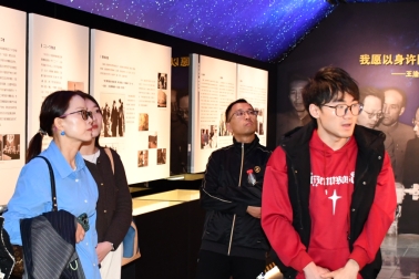 上海大学理学院一行在pp电子游戏平台官网科学家精神宣讲团讲解员唐占扬的带领下参观了pp电子游戏平台官网“以身许国”爱国主义教育基地王淦昌事迹陈列室,一行人对王淦昌“我愿以身许国”的家国情怀和高尚情操有了深入了解。