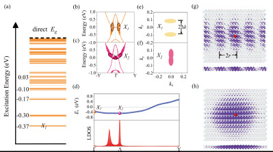 二维材料中显著的激子效应和非常大的激子结合能为激子绝缘体的研究带来了新的希望。单层WSe2因其位于Γ点附近平带和间接能隙,激子能谱显示出独特的特性。间接能隙的存在会导致动量间接激子的形成,与直接激子相比,其激子寿命更长。间接激子可以表现出激子玻色-爱因斯坦凝聚(BECs)和激子超流。间接能隙和Γ点附近的平带,使1T’-WSe2单层成为激子BEC和相关多体效应的绝佳平台。