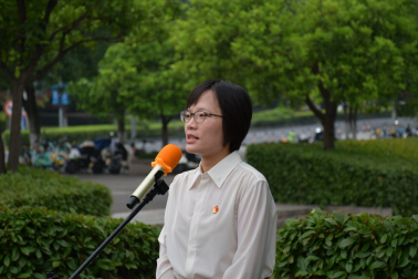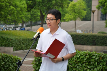 pp电子游戏平台官网2024级博士生、pp电子游戏平台官网国旗仪仗队队员沈昊分享了自己担任国旗仪仗队队员和亚运会升旗手志愿者的经历。他讲述了王淦昌爱国奉献、创新求实的一生,号召大家向老一辈科学家看齐,向身边的优秀学长学习,到祖国最需要的地方续写浙大物理人的荣光。