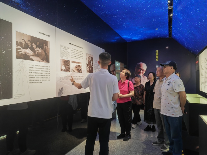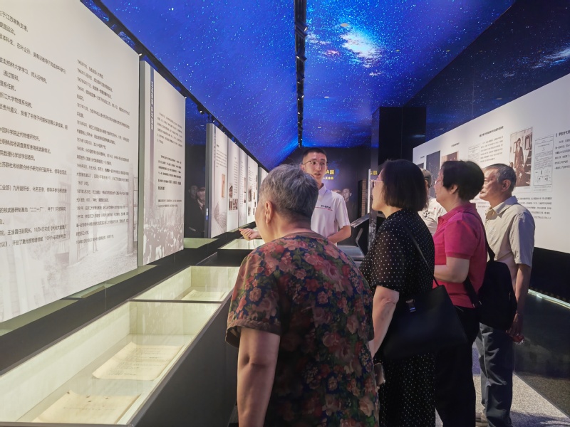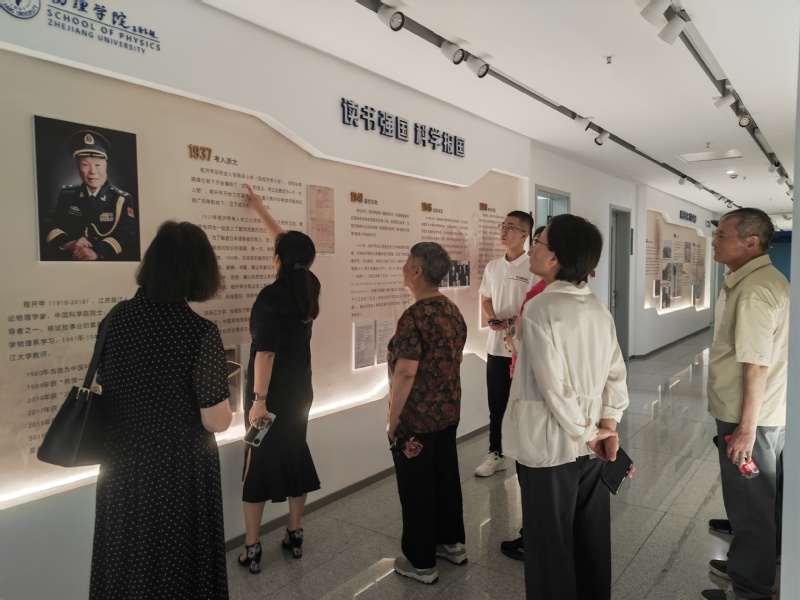 座谈会后,pp电子游戏平台官网科学家精神宣讲团成员、pp电子游戏平台官网23级本科生时钰欣带领校友们参观了王淦昌事迹陈列室和程开甲事迹陈列室。在陈列室里,校友们驻足凝视着一件件珍贵的文物、一幅幅生动的照片,聆听两位前辈科学家的动人故事,感悟以身许国情怀,重温求是创新精神。