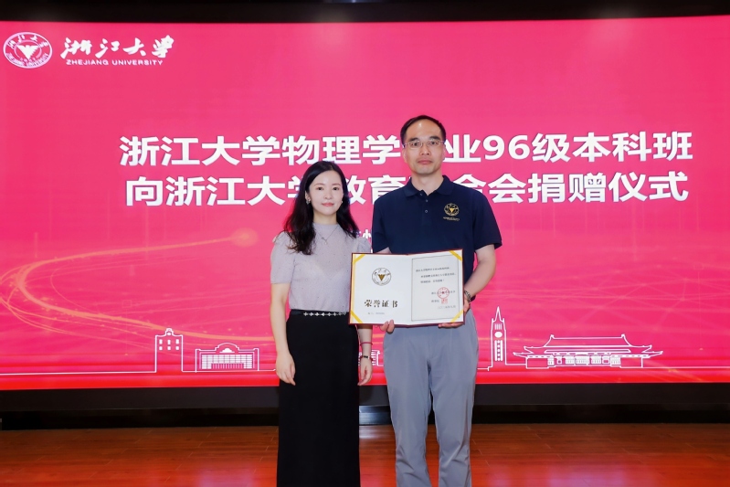 马晨华书记代表pp电子游戏平台官网教育基金会接受了96级校友集体的爱心捐赠,并向校友代表郑重颁发了捐赠证书。这笔凝聚着全体96级校友对母校深情的捐赠,是校友们对学院当年悉心培育的真情回馈,彰显了浙大物理人血脉相连、情系母校的赤子情怀。本次捐赠认捐总额50,000元,所募集款项将全部用于支持学院教学空间升级与文化环境建设。