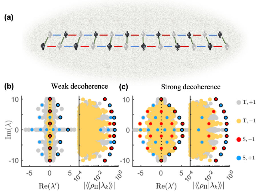 通过进一步的解析推导,研究团队得到了临界退相干速率的标度律,其结果与数值模拟高度吻合(图 2b)。值得强调的是,该刘维尔谱转变无法通过非厄米哈密顿近似描述,充分反映了真实开放量子系统独特的非平衡动力学特征。
