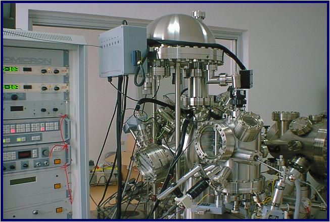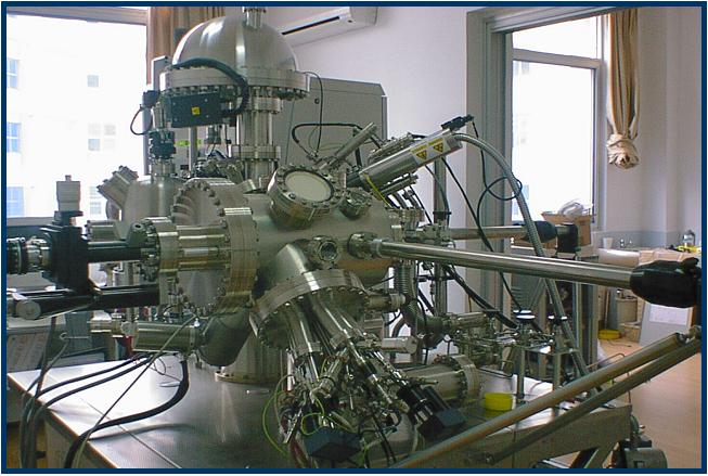 本系统从德国(Omicron)进口。系统背景真空度好于1′10-10torr,由快速进样室,生长室,分析室以及 STM室构成。系统除了配备有扫描隧道显微镜(STM)外,还配备有低能电子衍射LEED,光电子谱UPS和XPS,蒸发源以及样品清洁设备等。