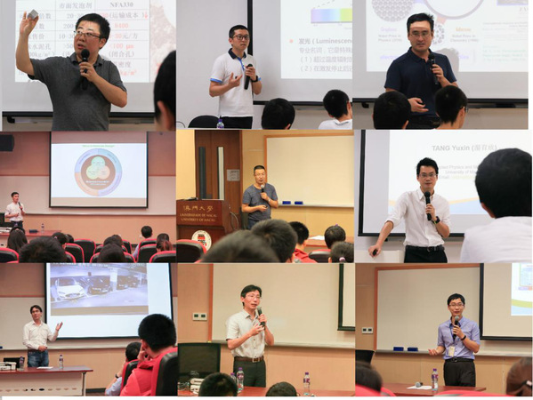 Associate Professor Hui Pan put forward the concept of material genome and elucidated the basic model of material design. Assistant Professor Guichuan Xing introduced perovskite, a kind of photoelectric material, in detail. Professor Daomu Zhao talked about the cultivation of innovative talents of undergraduates with the participation in “Challenge Cup”. Assistant Professor Huaiyu Shaoand Assistant Professor Yuxin Tang both talked about the battery, comparing the advantages of different kinds of battery and narrating their history respectively. Professor Songnan Quintroduced the physical properties and medical applications of carbon dots. Assistant Professor Shuangpeng Wang introduced the evolution of luminescent materials and compared the characteristics between OLED and QLED in different perspectives. Finally, Assistant Professor Guoxing Sun introduced two kinds of new materials based on his interest and specialty: hydrogel and foam cement.