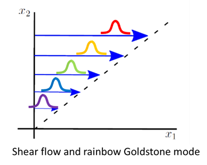 The aim of their study is to clarify how the long-range phase order emerges in two dimensions under a small nonequilibrium perturbation around equilibrium systems. They study a two-dimensional system that is driven into a nonequilibrium steady state by an infinitesimal shear flow. The Letter [1] is the first to show that such small nonequilibrium perturbation can cause the long-range order state in two dimensions. They have also shown that the long-range order originates from novel behaviors of gapless modes under the shear flow, which is named as rainbow Goldstone modes [2].
