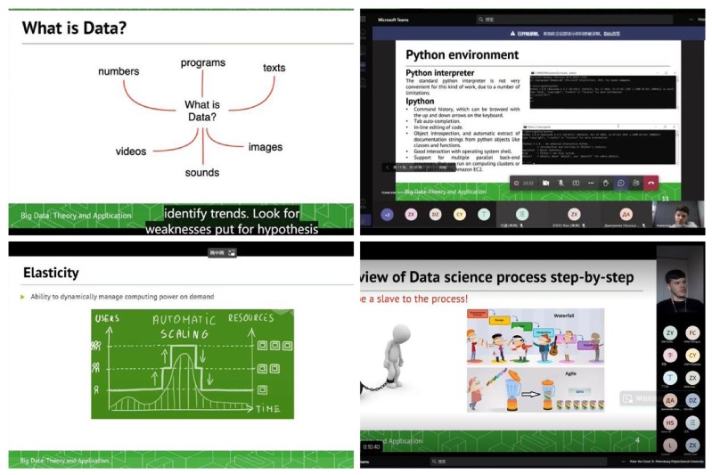 The Big Data: Theory and Application course is divided into two class modes: lecture and practical class. Starting from the most basic Python programming language, the two instructors introduced the basic methods of data processing, introduced the specific methods of big data processing including data importing, processing, analyzing and thus drawing conclusions, allowing students to operate freely in the practical class and giving timely answers to their questions through online contact. The later course also introduces the general big data computing framework, including models such as Storm streaming computing engine, and also involves part of the machine deep learning related knowledge, which shows that this discipline has a strong expansion of crossover. The students benefited from the well-made PPTs and the fluent lectures, and the assignments on Python and database in the order of the lectures were also a good exercise for the students to deepen their understanding of the basic database operations. The final project was very challenging but was successfully completed by the group with the concerted efforts of the students and was briefly presented in the last class. Through these two weeks of study, students not only improved their ability to solve data problems, but also gained the valuable experience of actively cooperating with several students.