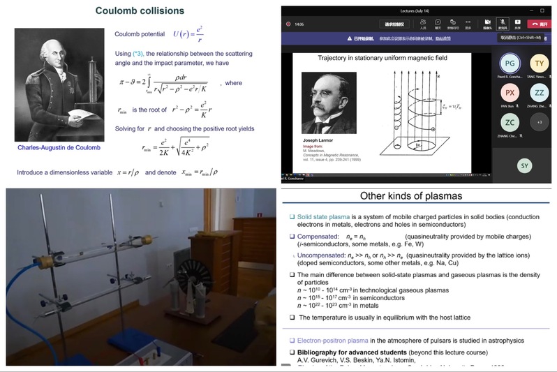 Plasma Physics and Controlled Nuclear Fusion course had substantial content, including the basic theory of plasma physics, as well as the introduction of advanced large-scale experimental devices - stellarator and tokamak device. In the course, the lecturer first gave a brief overview of the history of plasma physics, introduced plasma phenomena in the earth and the universe, and demonstrated phenomena such as rare gas glow discharge tubes and electrostatic ion spheres through laboratory recording videos, so that we can understand various interesting properties of plasma. In the following lessons, the relevant principles of plasma physics in the field of controlled nuclear fusion were further introduced, including Lawson criterion and Ignition criterion, plasma diagnostics principles, electromagnetic wave plasma heating principles and neutral beam injection. Thus, the course led us to cutting-edge research and equipment construction for controlling nuclear fusion.