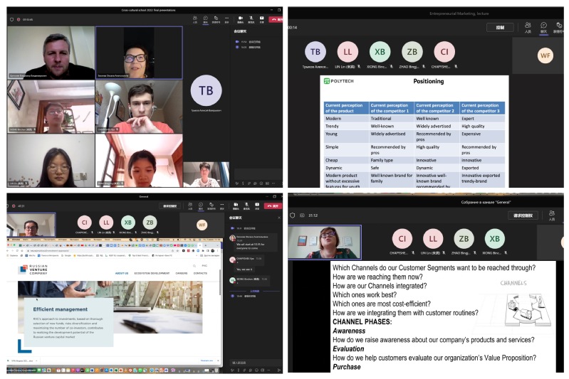 The course Cross-cultural School on Entrepreneurship and Marketing led students to learn the essentials and basic steps of business startup and marketing. First of all, students learned the 6D Hofstede model, and took China and Russia as examples to compare and analyze the similarities and differences between the two cultures. Then, with the project of Chinese foodtech to the Russian market as the main line, students learned and practiced different business models (PESTEL model, business model Canvas, 4P model, 4D branding model, etc.). In the final presentation, teachers made comments and suggestions on students' achievements. During the 10 days of intensive learning, students with different native languages communicated and learned in class to improve their English, experienced the social culture, local customs and social life style of Russia in different model analysis, and established a preliminary understanding of the establishment of enterprises and product marketing. The lecturers discussed incisively and shared rich entrepreneurial knowledge and wonderful entrepreneurial stories, enabling students to have a new understanding of how to achieve innovation and entrepreneurship under the new situation and the new normal.